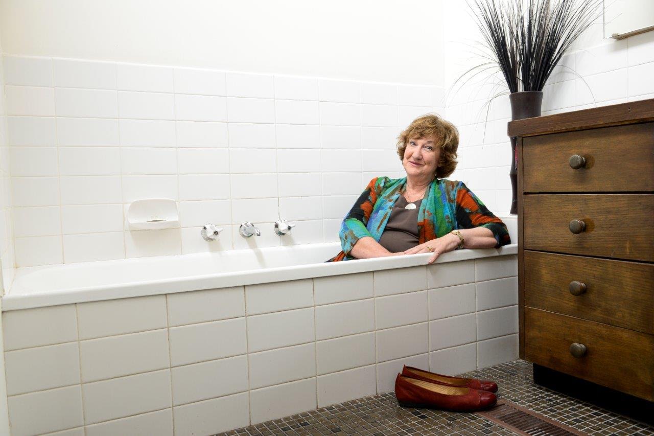 Hazel Edwards often reads in the bath (not usually with clothes on).This fun photo about author workspaces was taken by the Copyright Agency. Her memoir ‘Not Just a Piece of Cake:Being an Author’ (Brolga) is available in print & e-book. http://www.hazeledwards.com/page/not_just_a_piece_of_cake_being_an_author.html.