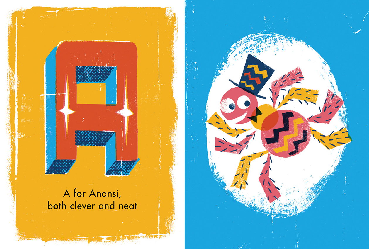 Oblique references to folk and fairy tale characters carry readers through the alphabet in this sprightly rhyming picture book. Beginning with Anansi the spider, “both clever and neat,” Masson name-checks specific characters (“C is for Cat, wearing elegant boots”) and describes more general figures (“D is for dragon, safeguarding his loot”). Textured with scratches and speckles and given a muted primary color scheme, Nielsen’s mixed-media images have a sturdy, posterlike presence.