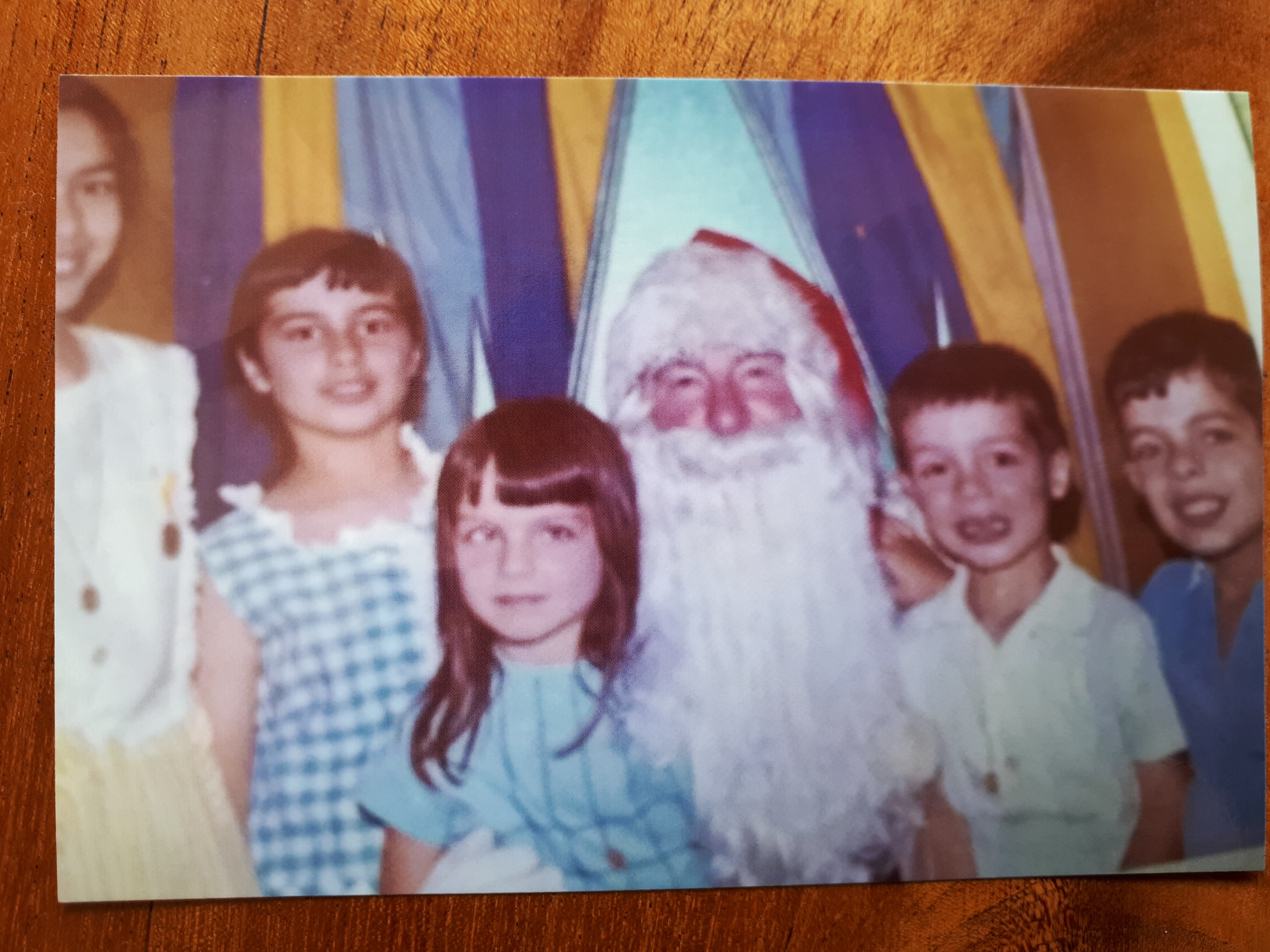 Seeing Santa in David Jones, in childhood. I am at very edge on left, in yellow dress, Camile standing next to me, Gabrielle and Bertrand on Santa’s lap, and Louis at far right.