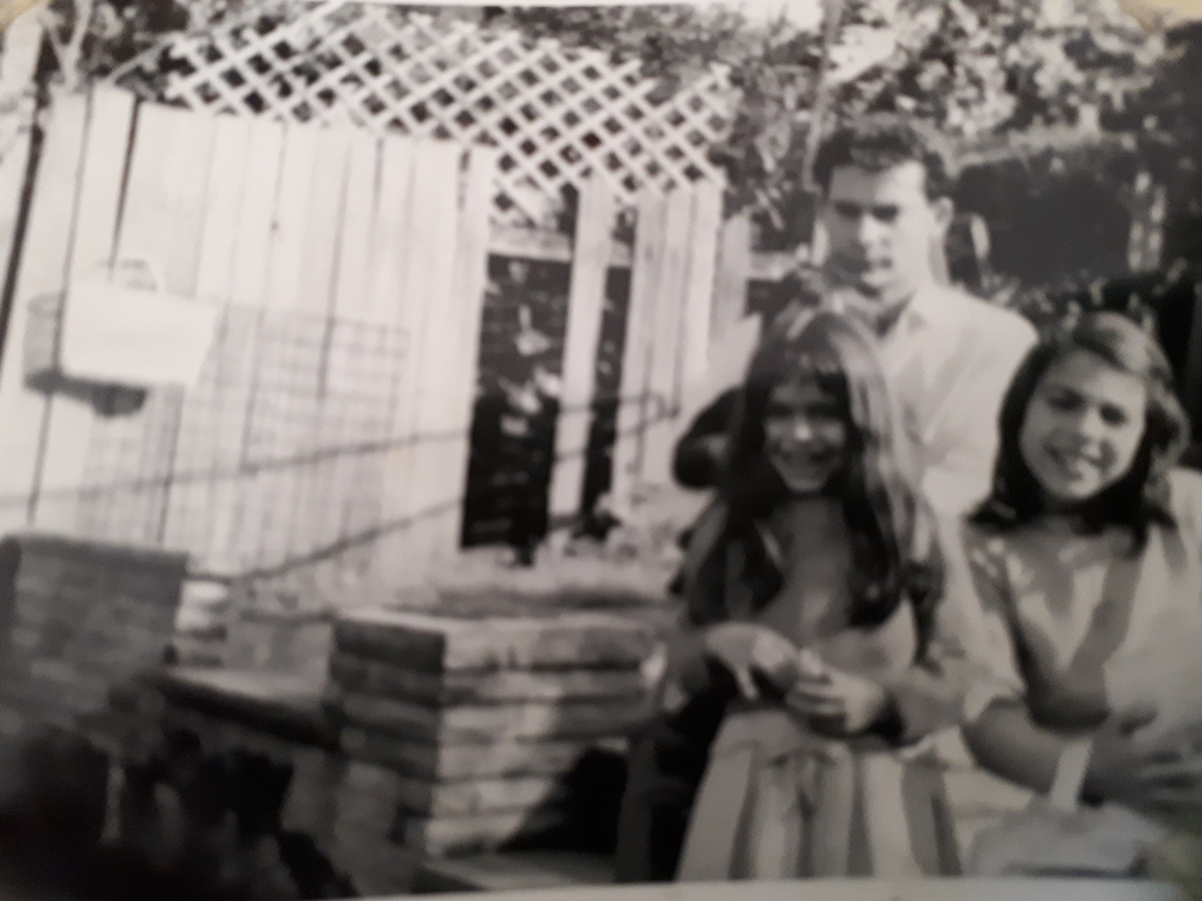 In Sydney, aged about 7 (in front, on the left, with long hair: sister Beatrice next to me and Dad behind us.)