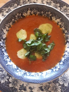 Today I thought I’d do something really different and share a couple of recipes for cold soup which I’ve been making quite a bit in the recent heatwave we’ve been having and which have helped to fuel my writing!  They’re made quickly using the pressure cooker(thus not heating up the house too much) and they are so refreshing, nutritious and delicious well-chilled, either for a main for lunch or for a dinner entree.