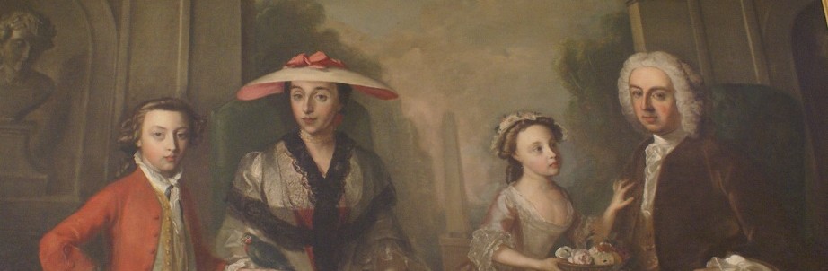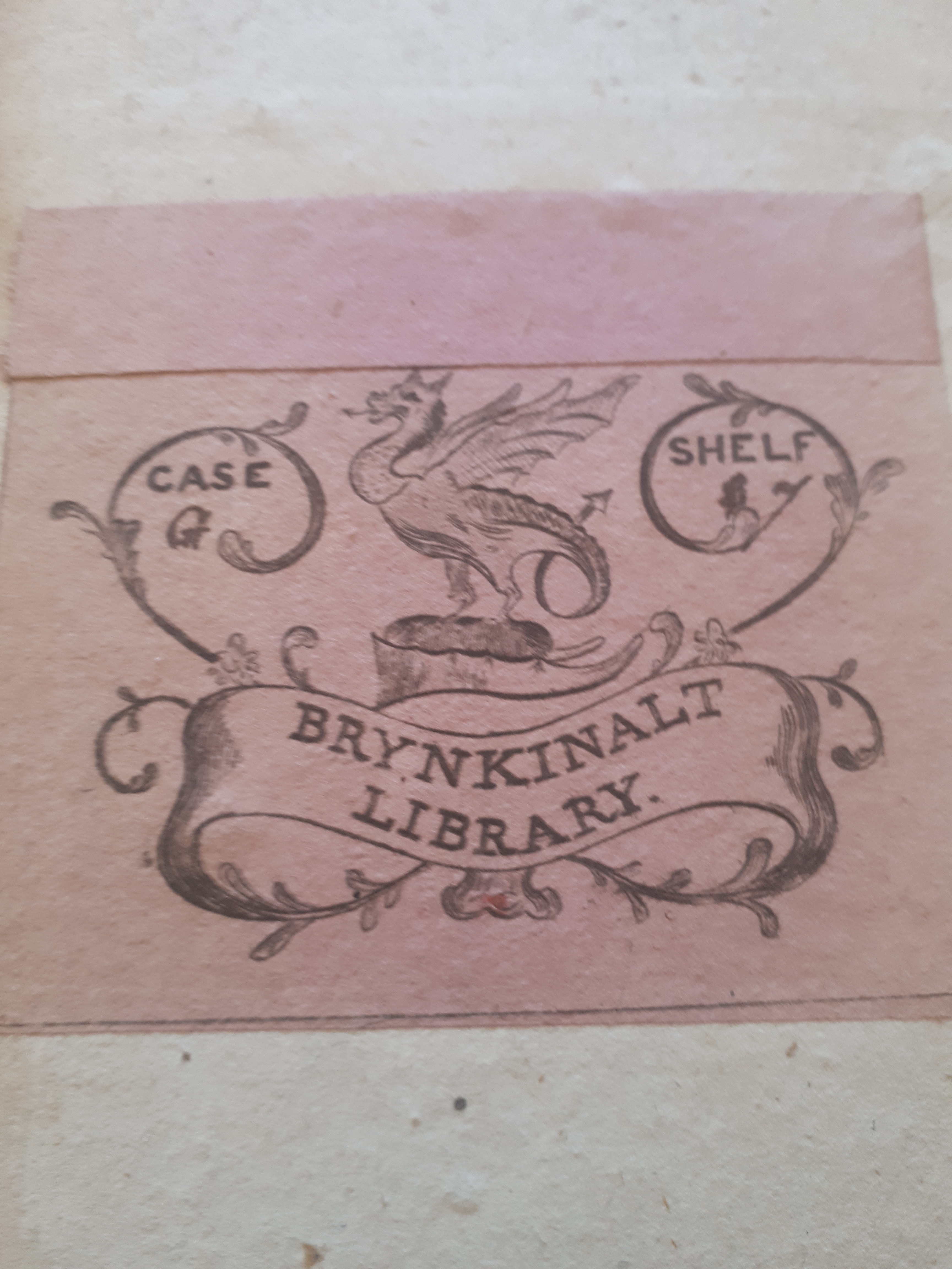 A couple of searches on Google revealed to me something about the people behind the plates. The library name and the dragon symbol on the frst bookplate had made me pretty sure it had come from somewhere in Wales and so it proved to be but intriguingly, the Brynkinalt Library was not a public library, but a private one once housed on an estate that has belonged to the one family since the 10th century. Could the eighteenth-century faces that stare out at the viewer from the painting featured on the Brynkinalt website have once been bent over this book?