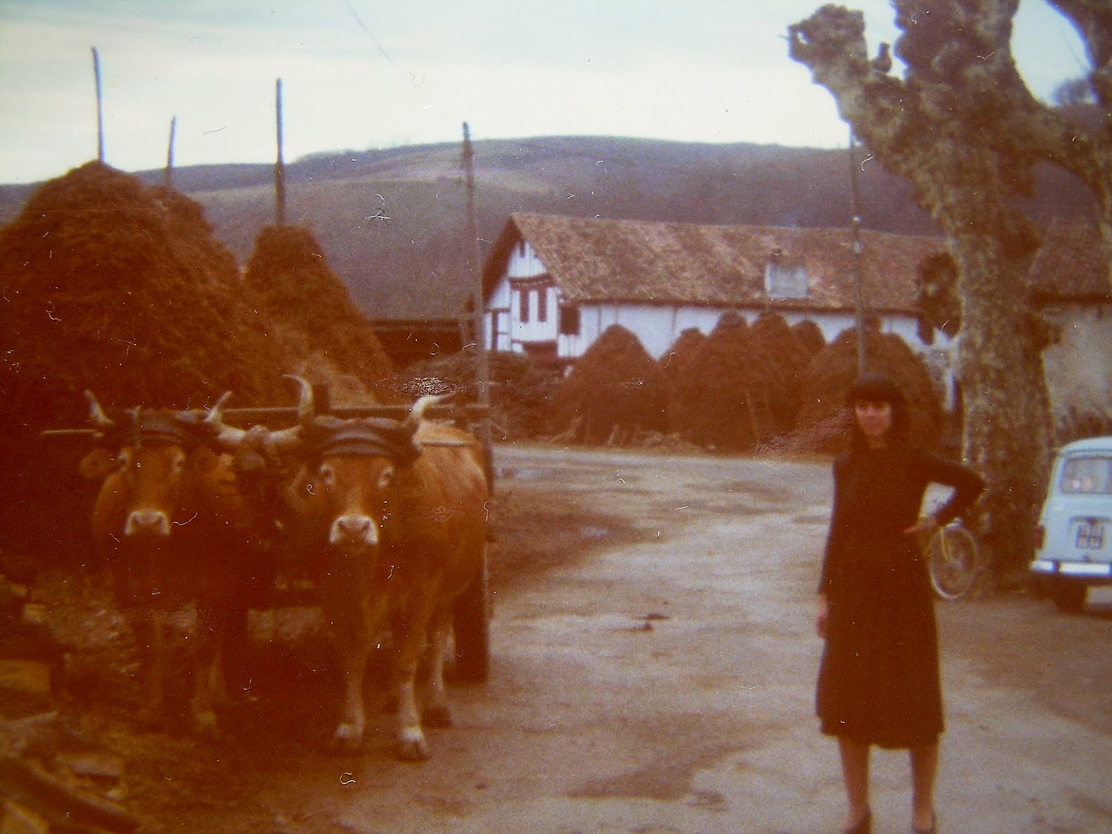 Below is a composite photo of my mother’s maternal side, on the Basque lineage. Going left to right, far left is my mother, Gisele; then her mother, Anna (both born in the French Basque country); her mother Antonina, and her mother Ama (both born in the Spanish Basque country, though Antonina came to live in the French Basque country as a young woman). And below that is me, as a teenager in the late 1970’s in the French Basque country, near the village of Ainhoa. Yes, you could still see the occasional ox cart there, back then!