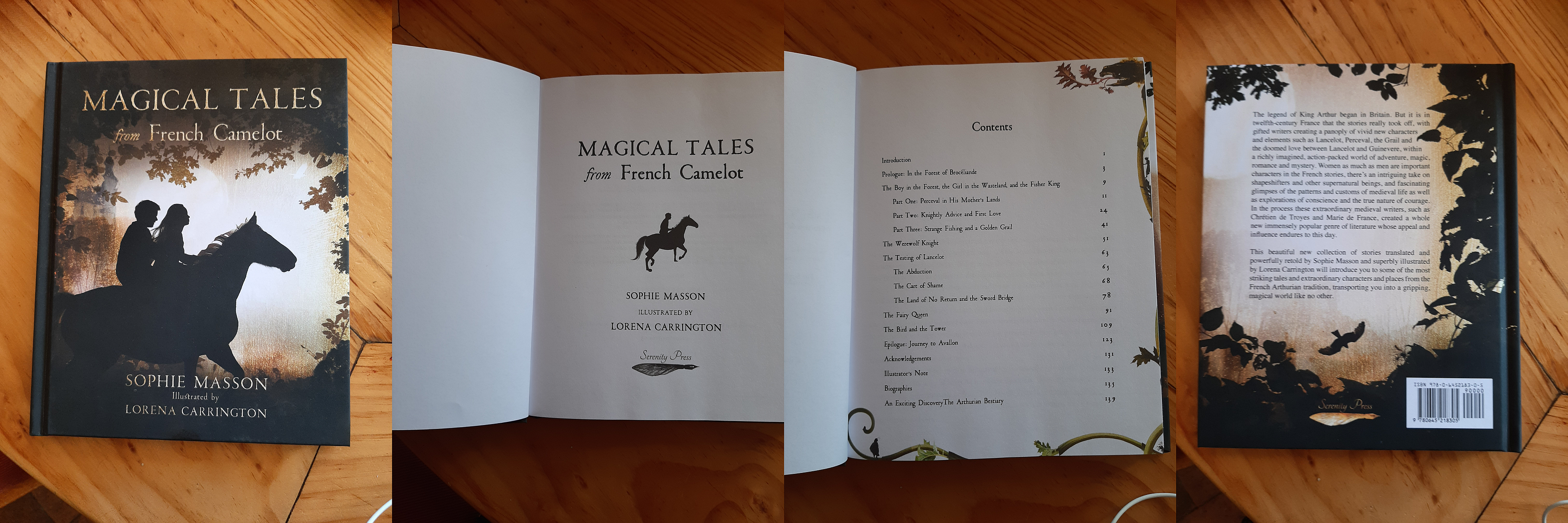 Just before New Year, what a lovely surprise in the mail: a proof copy of Magical Tales from French Camelot, my forthcoming book with the fantastic Lorena Carrington! To be published by Serenity Press in March 2022, it features my original translations and retellings of some great French Arthurian classic tales from the Middle Ages, principally stories by the great twelfth-century French writers Chrétien de Troyes and Marie de France, illustrated by absolutely superb pictures by Lorena. It’s so good to be able to leaf through this first copy–looking wonderful!