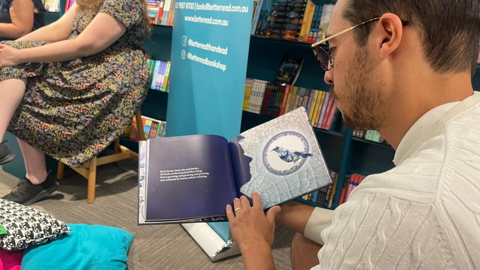 Last week was a real Satin week for Lorena and I, with the fabulous official launch in Sydney and bookshop and school visits. Didn’t have time to put up pics then (was having too much fun!), but here are a few now. Satin really had a most wonderful introduction to the world–may he fly ever higher!