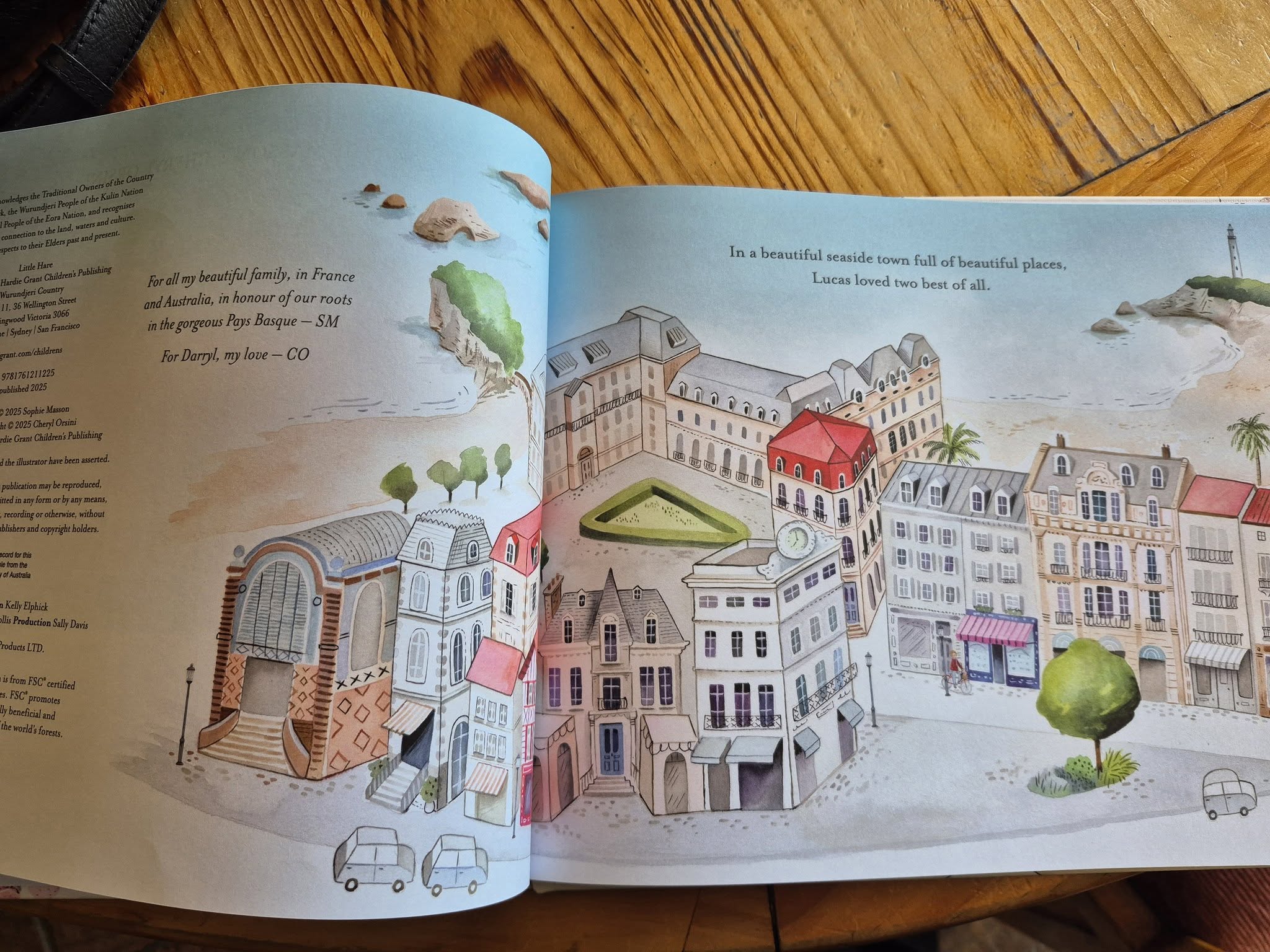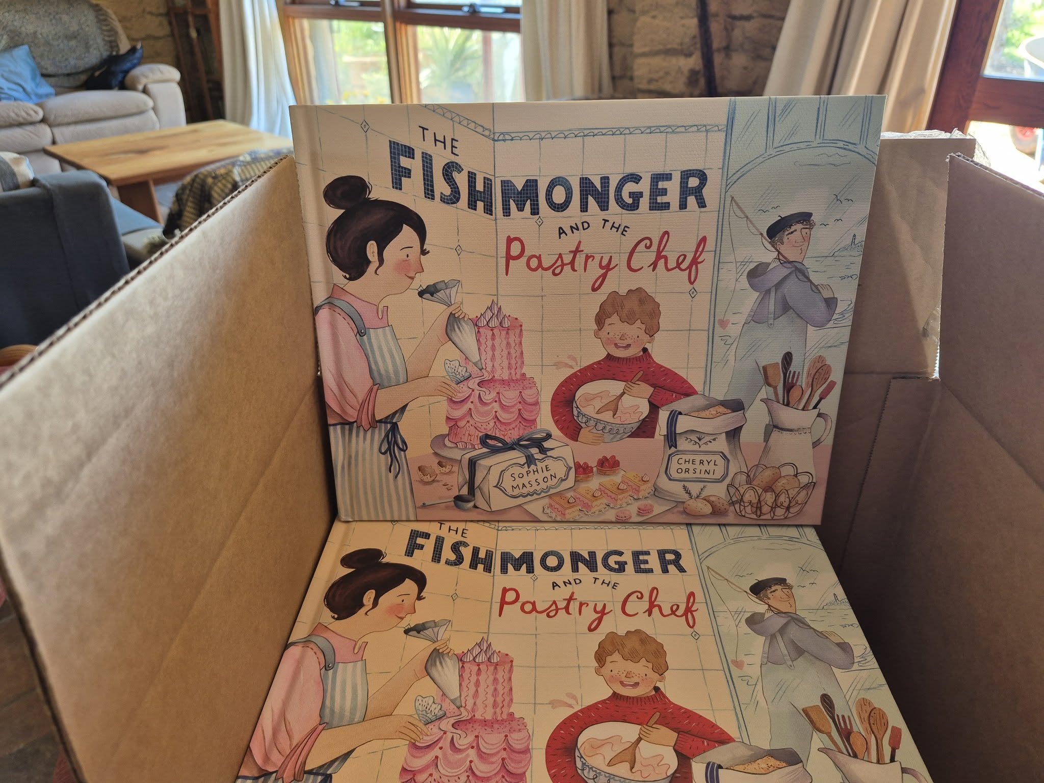 An absolutely delicious, gorgeous parcel arrived for me yesterday: advance copies of The Fishmonger and the Pastry chef, my forthcoming picture book with the wonderful Cheryl Orsini, which is coming out with Little Hare (Hardie Grant Kids) in late November. I am so very happy with it, it is so very very beautiful! Elements of the story are freely inspired my family history in the beautiful seaside town of Biarritz, but it’s also very much its own thing, and the glorious visual world Cheryl has created is the most perfect place for my words to live in.