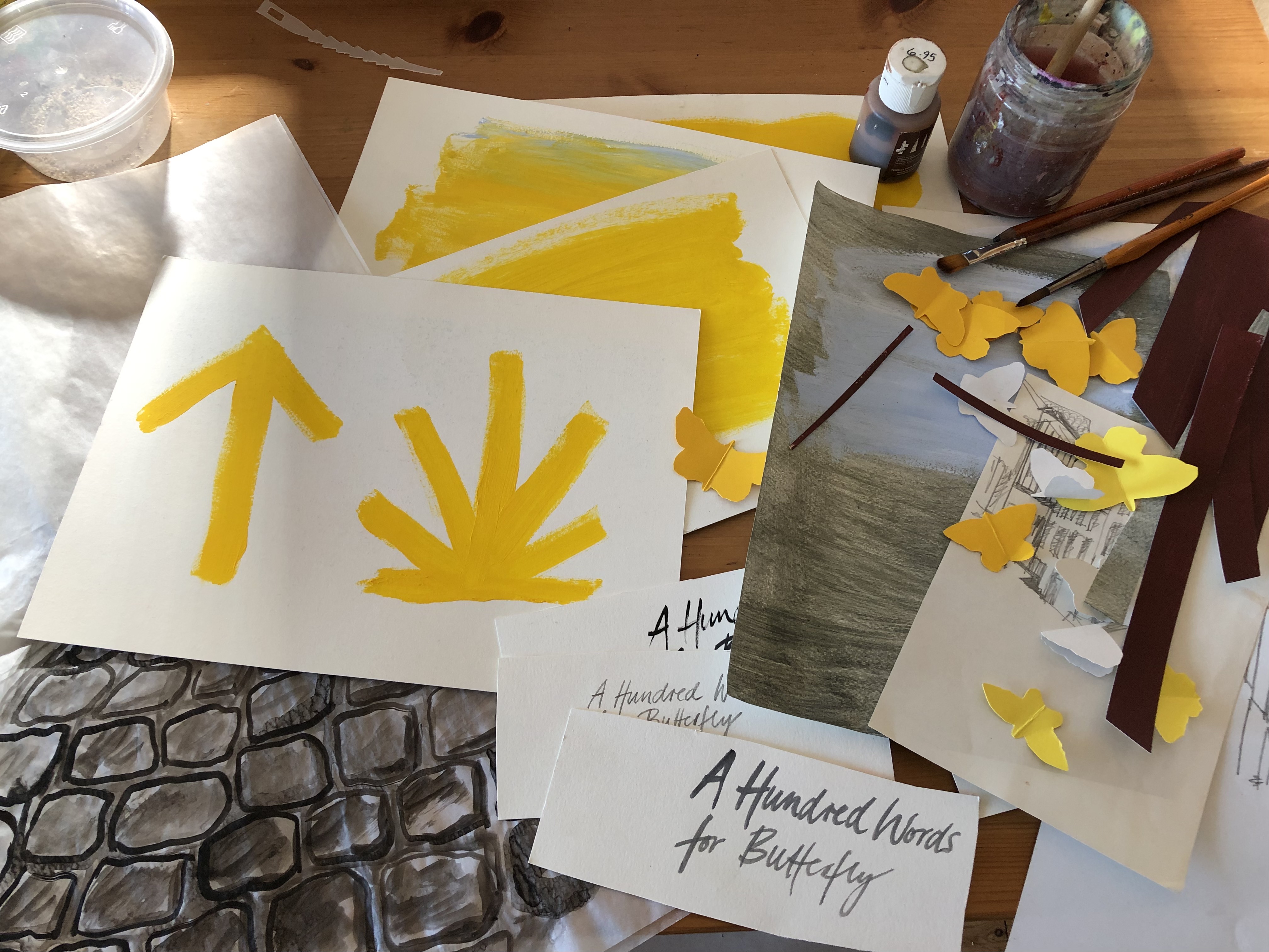 Bettina, tell us about your process in creating the cover for A Hundred Words for Butterfly. What preparations did you have to make? What stages did the work go through? What inspired you? And what materials/media did you use?