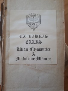 Investigating the second bookplate also produced an interesting result: the book had once belonged(presumably after it had left Brynkinalt library) to a renowned Canadian scholar in French literary studies and art history, Dr Madeleine Blanche Ellis of Montreal (1915-2008). The bookplate also cited Lililan Fitzmaurice, who turns out to be Dr Ellis’ mother (Lilian’s husband and Madeleine’s father was George Porter Ellis). Mother and daughter are mentioned together on the bookplate, and the book comes from the library of the Ellis family. Was Madeleine still living at home at the time? Or did they own the book together? Small mysteries perhaps; but intriguing glimpses, as well, into past lives.