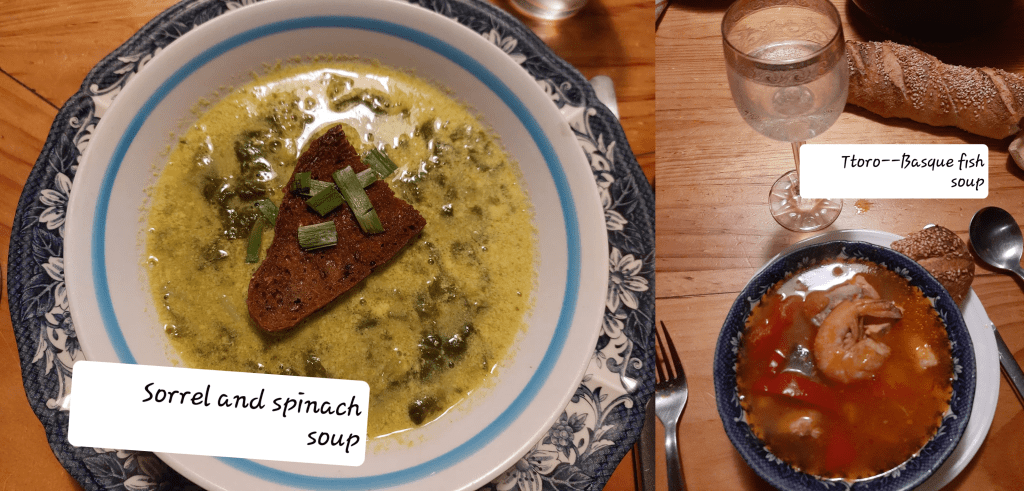 Soupe a l’oseille et a l’ail: This sorrel and garlic soup was made by Anja and Stefan when we had the soup day, and I loved it so much! It’s dead simple too.