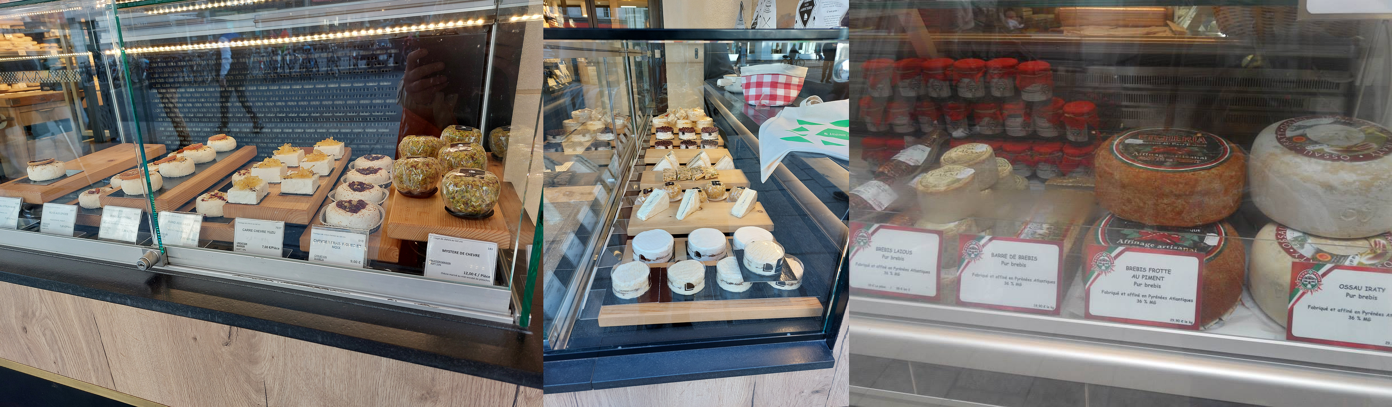 I’m not even going to try to describe the hundreds of different cheeses there are in France, just to say that in a meal, French people always eat the cheese before the dessert (and after the salad, if you are having one then), and often you change what wine you drink at that point. A French cheese platter can be just a simple presentation of say three cheeses of different types, or more elaborate. And you always eat cheese with bread—crackers are for when you have cheese as an aperitif, maybe with charcuterie as well. (By the way, charcuterie—salamis, ham, etc—is usually reserved for aperitifs, entrees or for lunch. Sausages of course are different.)