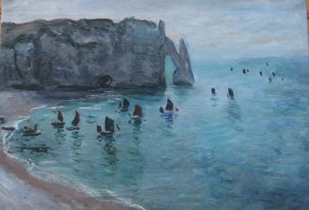 Pic below is a postcard reproducing a gorgeous painting of Etretat and its fishing boats by Claude Monet(1885)